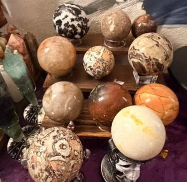 A place where you can learn, laugh, shop, vibe, and be part of something real. Whether you’re grabbing your first crystal, building your collection, or joining one of my wild raffles, I’m so happy you’re here.
